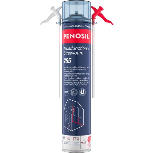 PENOSIL Multifunctional Strawfoam 265 este o spuma poliuretanica monocomponenta, gata de utilizare, cu pai aplicator, recomandata pentru umplerea golurilor, etansarea rosturilor si penetrarilor de tevi, precum si pentru lucrari de izolare termica si fonica in constructii si renovari. Produsul are aderenta buna la majoritatea materialelor de constructie uzuale, precum lemn, beton, piatra, ipsos, metal, PVC si polistiren, fiind potrivit pentru aplicatii diverse la interior si exterior, in functie de lucrare si de protectia ulterioara a spumei.